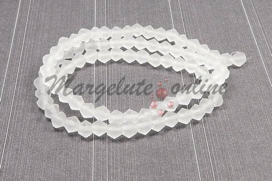 Cristale din sticla, biconice, frosted, 3 mm, albe