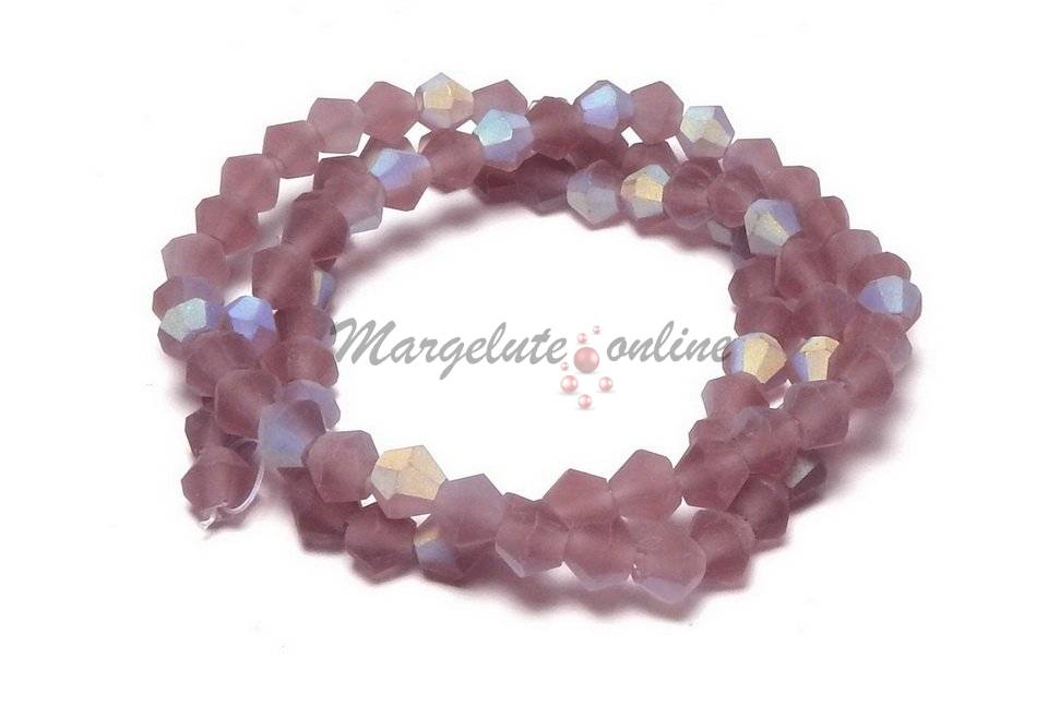 Cristale din sticla, biconice, frosted, AB, 2 mm, purpurii