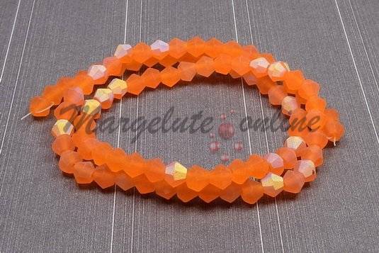Cristale din sticla, biconice, frosted, AB, 4 mm, portocaliu inchis