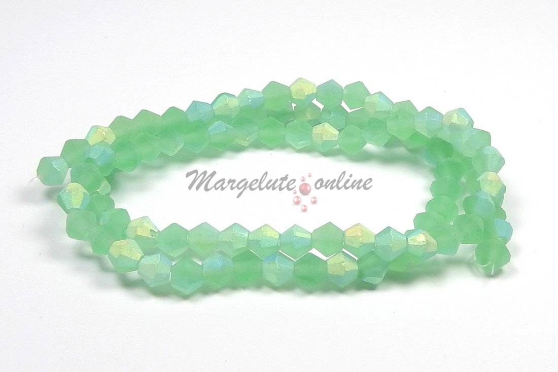 Cristale din sticla, biconice, frosted, AB, 4 mm, verde deschis