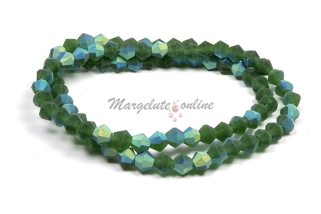Cristale din sticla, biconice, frosted, AB, 4 mm, verde inchis