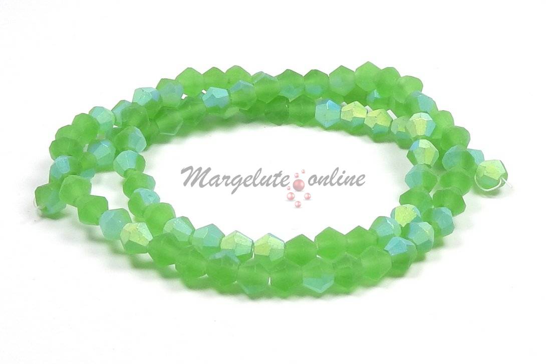 Cristale din sticla, biconice, frosted, AB, 4 mm, verzi