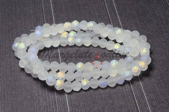 Cristale din sticla, rondelle, 3.5x3 mm, frosted, AB, albe