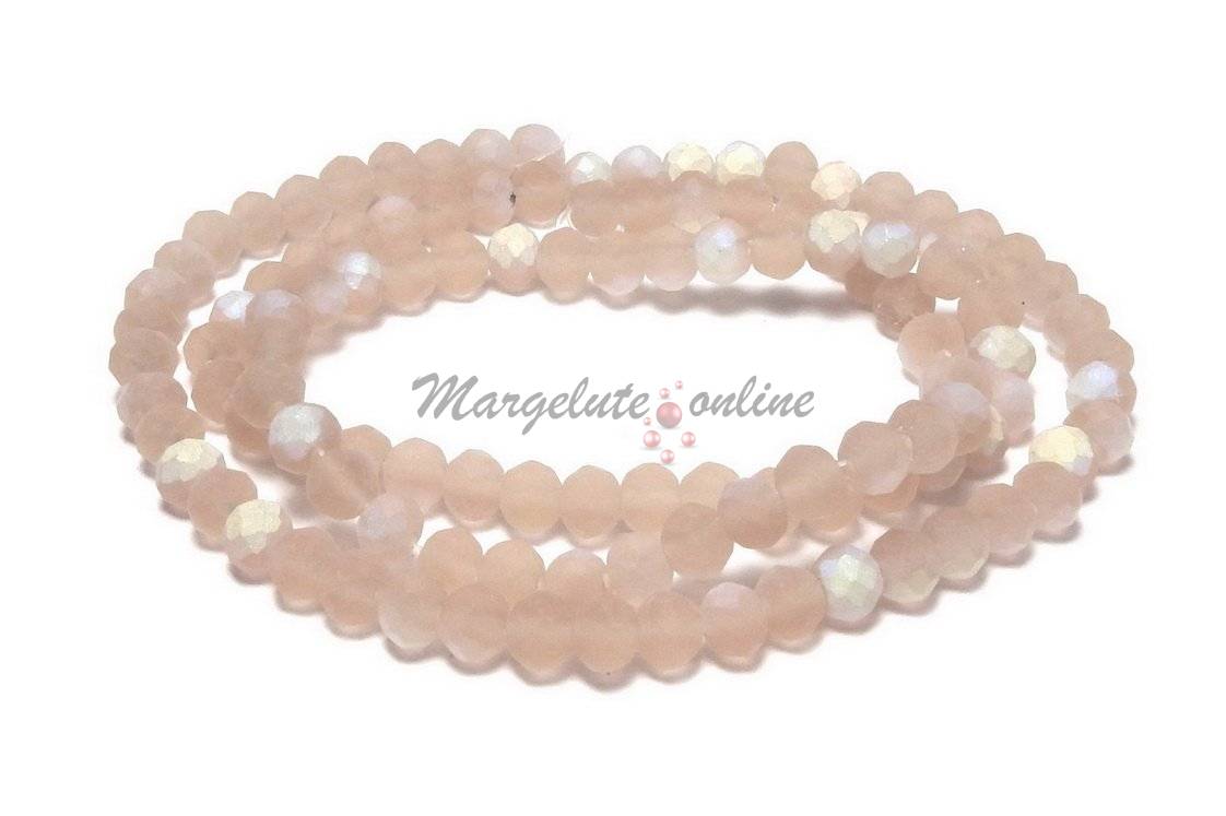 Cristale din sticla, rondelle, 3.5x3 mm, frosted, AB, bej