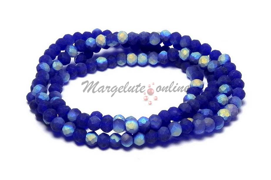 Cristale din sticla, rondelle, 3.5x3 mm, frosted, AB, safir