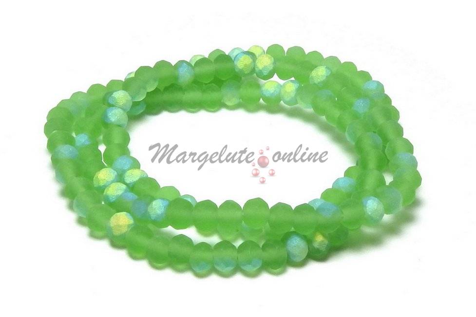 Cristale din sticla, rondelle, 3.5x3 mm, frosted, AB, verzi