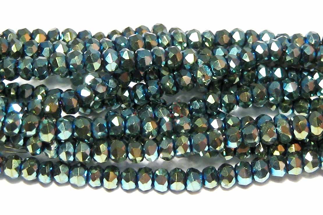 Cristale din sticla, rondelle, 6x5 mm, metalizate, verzi
