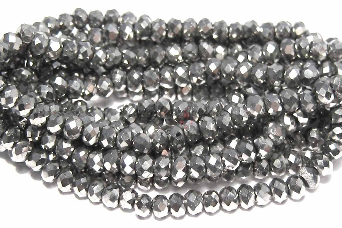 Cristale din sticla, rondelle, metalizate, 6x5 mm, platina