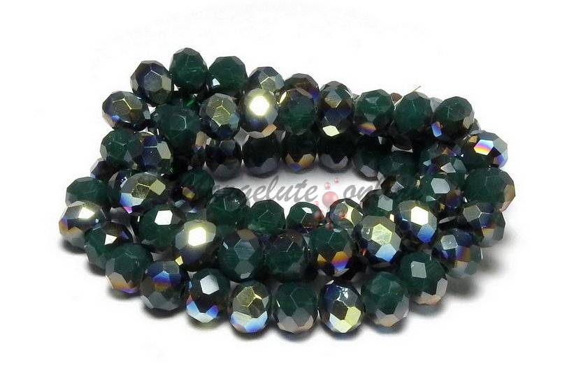Cristale din sticla, rondelle, opace, electroplacate, 6x5 mm, verde inchis