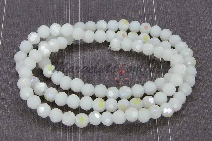 Cristale din sticla, rotunde, opace, AB, 4 mm, albe