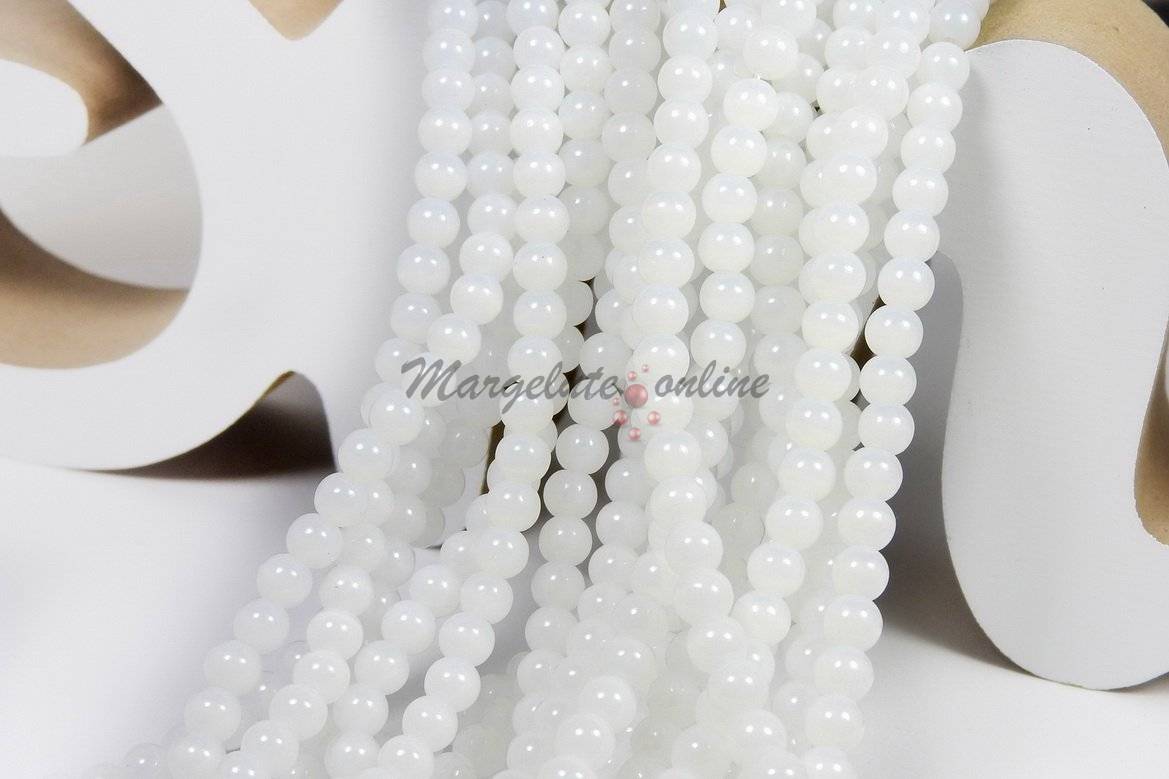 Margele din sticla, rotunde, 4 mm, semiopace, albe