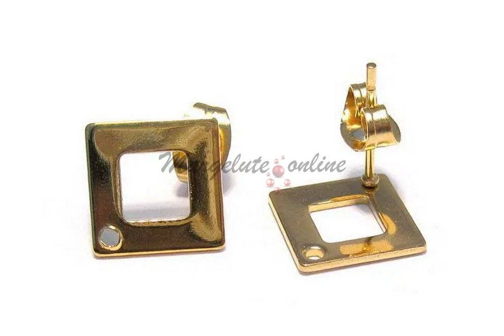 Tortite cercei din inox, placate cu aur de 24K, 9.5 mm lungime, 9.5 mm latime, tija 0.8 mm grosime.